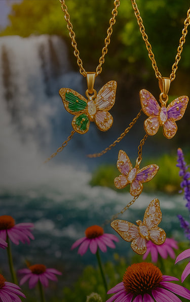 Glänzende Schmetterlingskette aus farbigen Zirkonia-Steinen